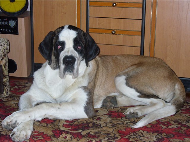 Здравствуйте! Решил так-же открыть свою тему. Хотя на форуме я уже представлялся в нескольких разделах позволю себе немного напомнить Вам о своей собачке... Итак, после нескольких месяцев изучения всевозможной литературы, интернет сайтов, разговоров с владельцами собак, прасмотра фотографий мы с женой остановились на двух пародах - Сенбернар и Ньюфундленд. В интернете нашли ближайший питомник, это "Хижна дяди Джери" в г. Запарожье (100 км. от г. Днепропетровска). Буквально через день супруга на маршрутке доехала до Запарожья где её встретил владелец питомника. А что было затем я даже не мог и представить... Звонок по мабильному, и голос: "Это я, уже в питомнике..., какие они огромные и красивые..., сейчас мне пакажут щеночка..." пауза... и вдруг я слышу в трубке детский писк, крик, смех...в общем буря детских эмоций взрослого человека!!! Это выбежала "Рута" и с ходу подбежала к жене, хвостиком машет, спинкой трётся, руки лижет, лапку даёт... Не удивительно, что женское сердце не выдержало такой атаки!!! Связь прервалась... Примерно в 18.00 того-же дня к подъзду дома подъехал микроавтобус, открывается дверь и что я вижу - на руках жены лежит ЧУДО с темными ушками, белыми лапками, рыжей спинкой..., и печальными глазками...!!! Это была уже наша "Рута"!!! Ей было 4,5 месяца. А затем началась "жестокая" реальность: с машины выносим на руках, на 6-й этаж несем на руках, гулять выносим на руках... И гуляли тоже своеобразно: бегаем, бегаем но только кто-то чужой пройдет мимо - бац, сидим как столбик и ни в перед ни назад... минут десять сидим, думамем... Дома тоже "порядок" наводим: три пары тапачек, видио камера, столик журнальный, двери новые, обои и ленолиум были списаны с баланса..., а так-же а-писяные коврики и т.п. Страшно...? Но ни смотря на все это, я ни закакие багатсва мира не растанусь со своей "Рутой", этим чудесным горным цветком!!! Мы ее просто ЛЮБИМ!!! Вот такая "Рута", прошу "любить и жаловать" (с). P.S. прошу извинить за повтор имеющихся на сайте фото. URL=http://radikal.ru/F/s49.radikal.ru/i125/0901/80/aff24cf0e2dd.jpg.html][/url] http://www.senbernar.ru/index.php?t=1755&a=stdforum_view&o=&st=45 "очень любим залазить на руки..." "... и на диванчик не прочь..." "фух, устала. (после прагулки)" "сандень..." "хозяин что-то замышляет..." "Собака..., почти Баскервилей." "отдых..." "бывает и так..." "нам по два года! Ну..., почти по два..."